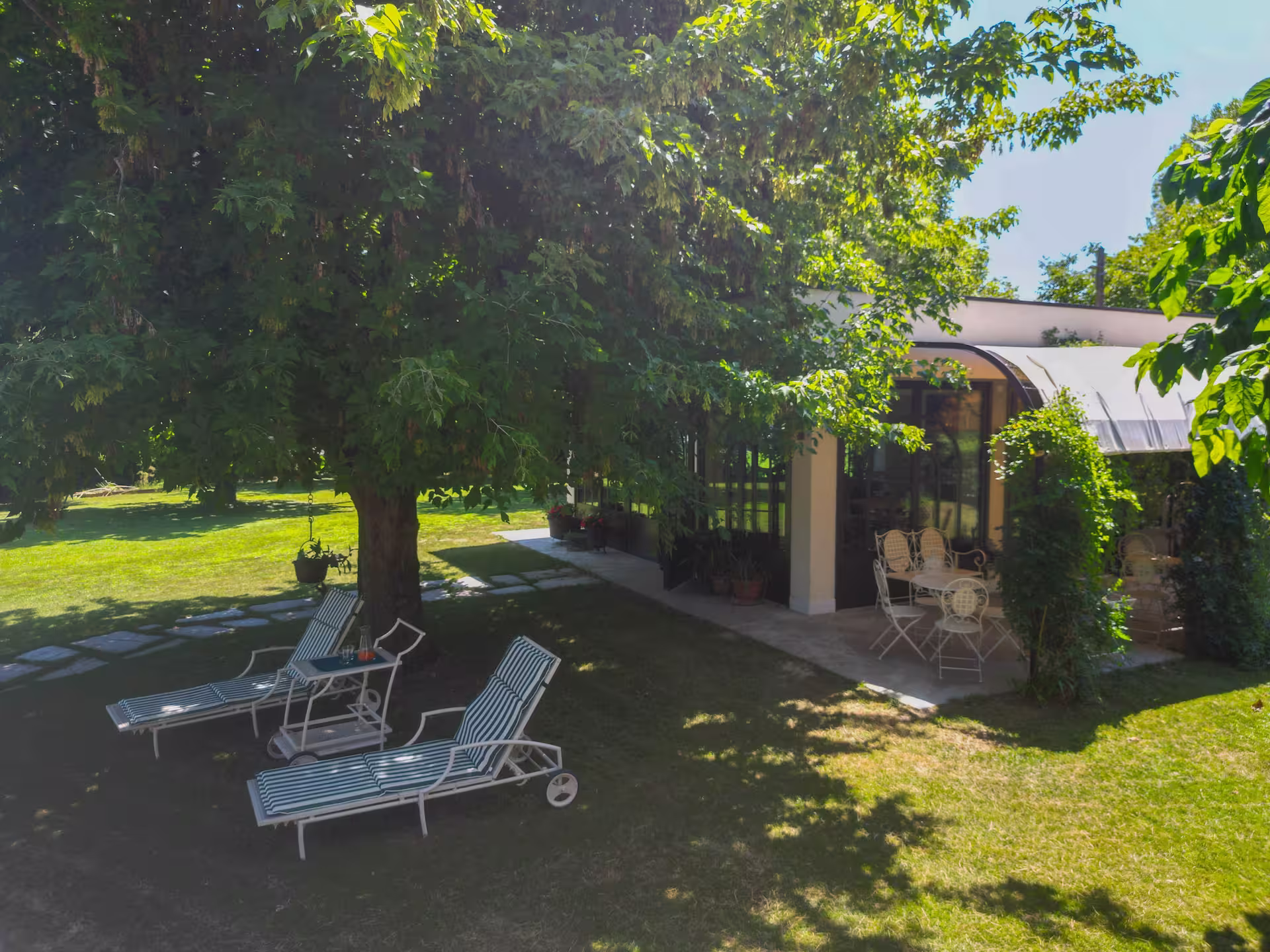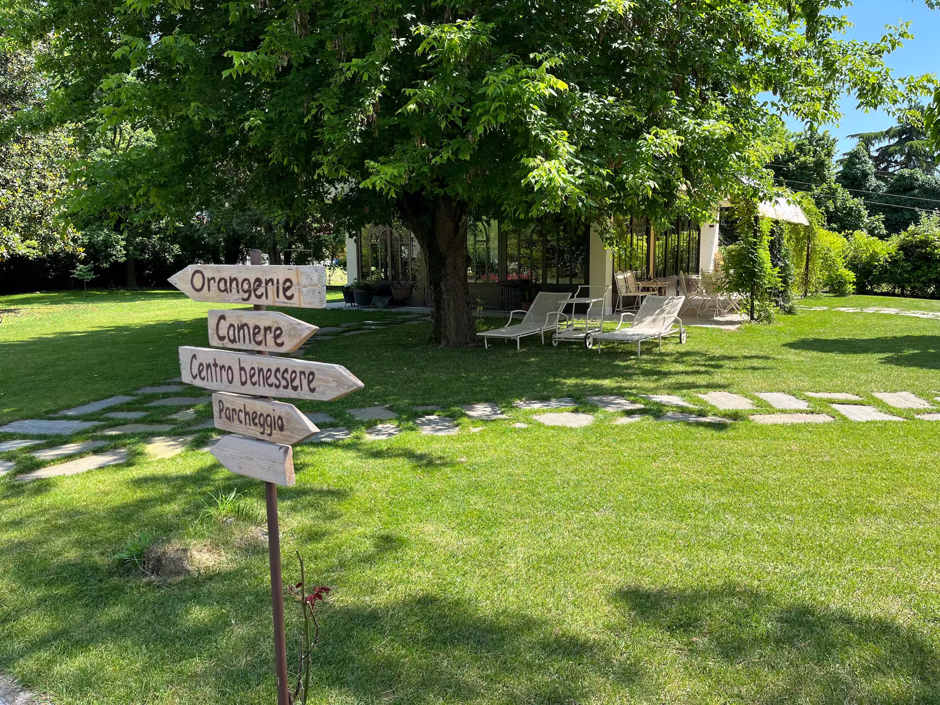 La struttura è composta da 3 camere, curate nei dettagli, con entrate indipendenti che si affacciano nell’ampio parco. Immersa nel verde si trova l’elegante “Orangerie”, un ampio salone vetrato polivalente.